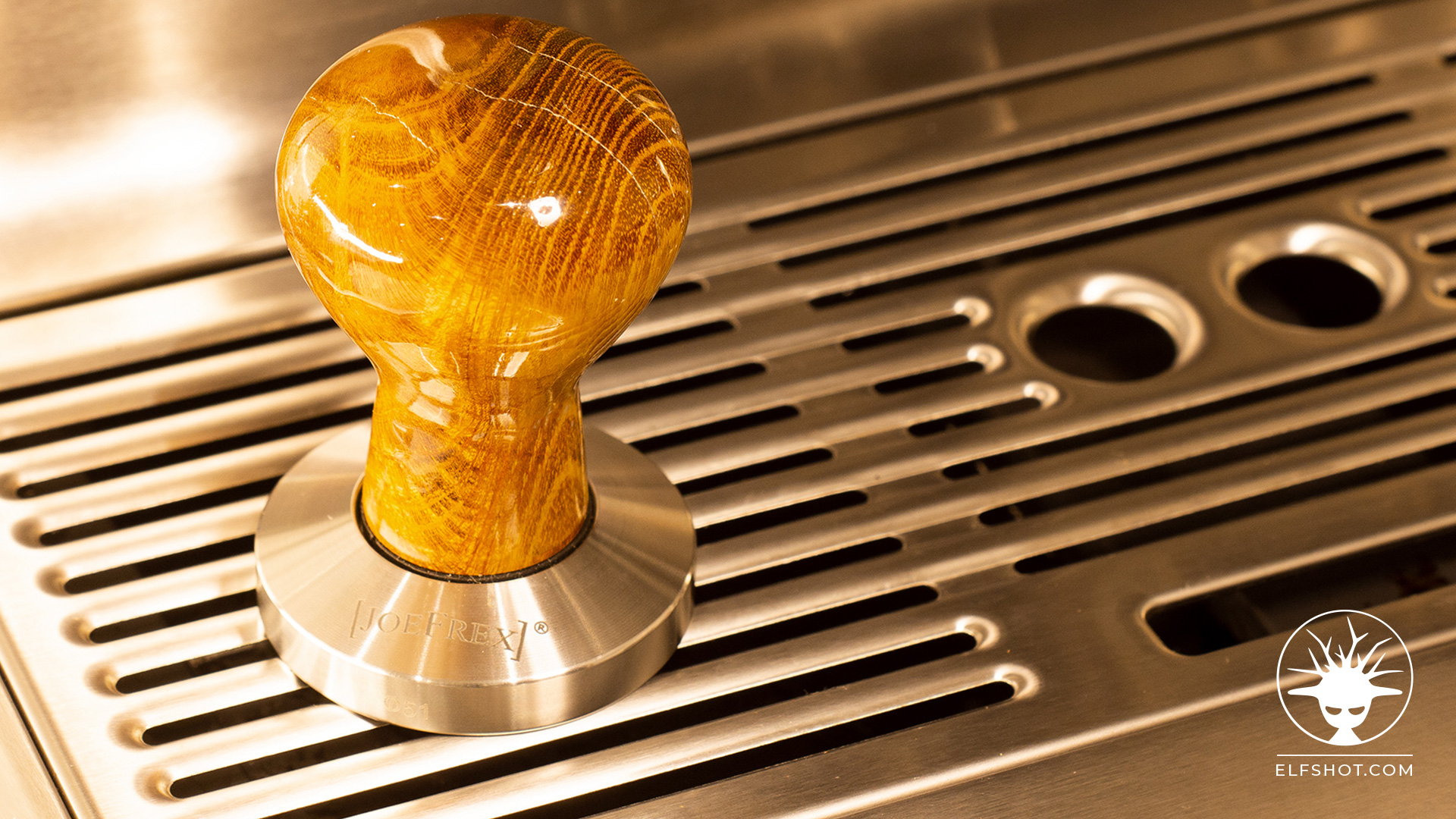 - Drill a hole in the base end that will have 8mm threaded rod (or a cut off bolt) glued or tap threaded into it. The other end of the bolt screws into the stainless steel tamper base that can be purchased online. I am using a 51mm Joe Flex base to suit the portafilter cup size. The Joe Flex bases have an 8mm hole pre-machined and threaded.