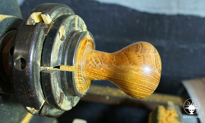 - Finish the handle with sandpaper, then use a parting tool to cut the handle out of the lathe.